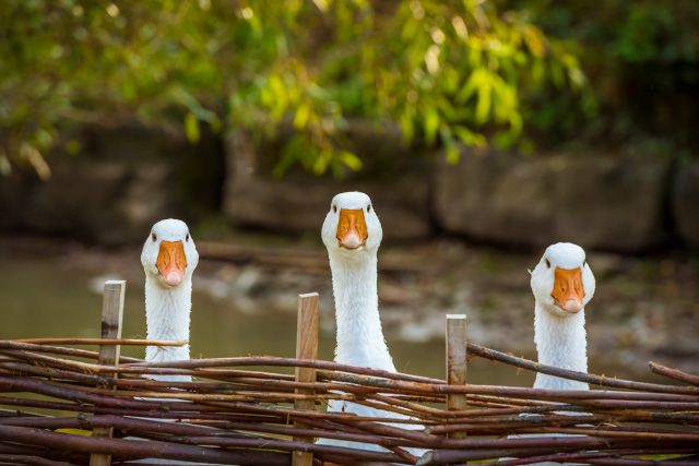 *pokaz hodowli gęsi pomorskiej w tradycyjnych warunkach w Zagrodzie Albrechta