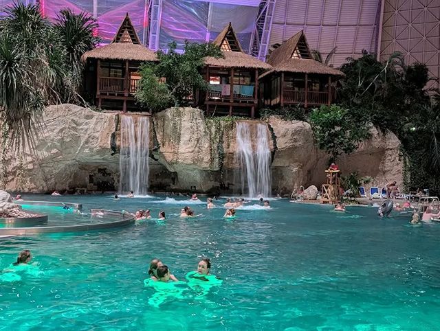 W tropikalnej wiosce zobaczycie Państwo domki typowe dla Tajlandii, Bali, Borneo, Polinezji, Amazonii i Kongo. Idealny klimat panujący tu przez cały rok (powietrze 25-26 ºC, woda 28-31 ºC) gwarantuje świetne samopoczucie ,a jak jeszcze do tego dodamy zjeżdżalnie, rwącą rzekę ,otwartą strefę Amazonia, klub dla dzieci Tropino to mamy pomysł na udany dzień.