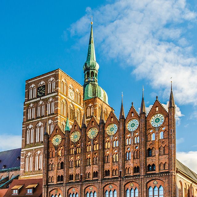 Stralsund przepięknie otoczony ze wszech stron wodą oferuje moc wrażeń. Zaczynamy od przyjemnego spaceru odkrywając zakątki ,do których rzadko zaglądają wycieczki. Oczywiście trafimy na bogaty w zabytkowe kamieniczki rynek z imponującym skarbem – fantastyczną gotycką fasadą ratusza ,kryjącego szwedzkie arkady .